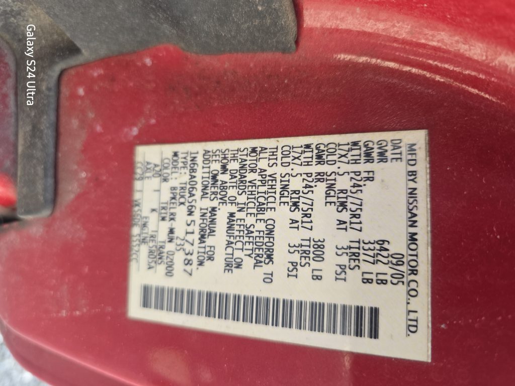2006 NISSAN TITAN SE EXTENDED CAB 5.6L 2WD, PARTS ONLY