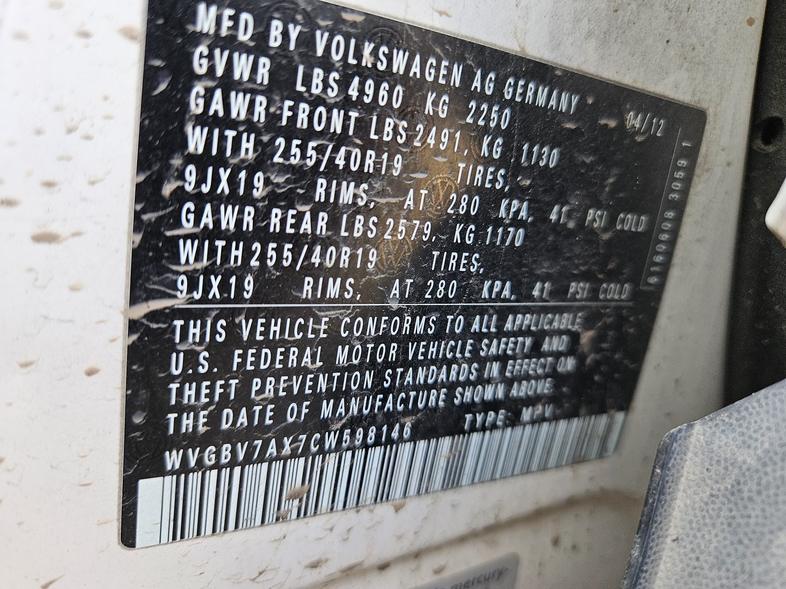 2012 VOLKSWAGEN TIGUAN 2.0L AT FWD, PARTS ONLY